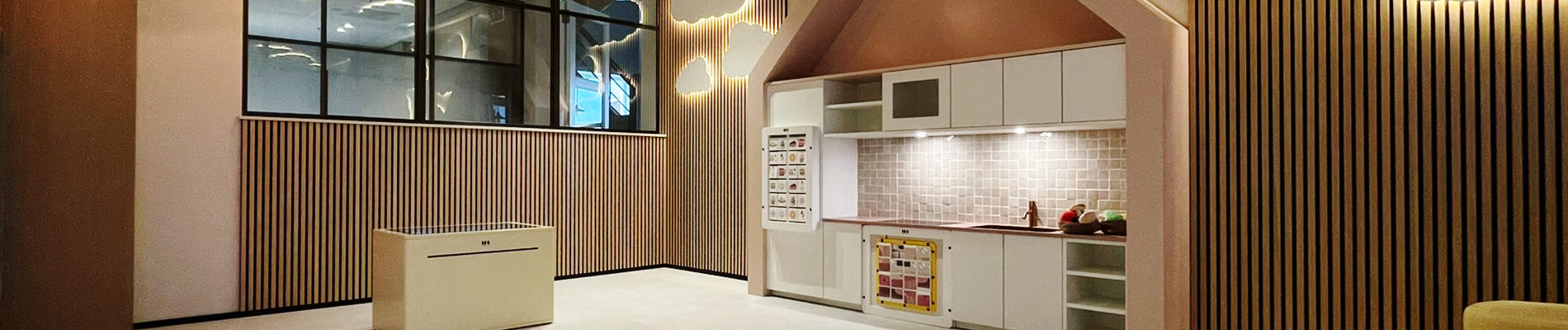 在荷兰 Middelharnis 的 Tieleman Kitchens 展厅中央,一个充满现代感与温度的儿童游乐空间悄然亮相。这个全新打造的区域让孩子们在安全、快乐的环境中自由玩耍,而父母则可安心与顾问交流,无需分心。IKC受托为这一空间进行了全面升级,使“游戏体验”、“空间功能”与“展厅动线”实现了完美融合。