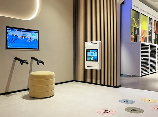 儿童区的设计兼顾不同年龄段的需求,融合数字与实体游戏,带来丰富多样的互动体验。定制的互动游戏以独特配色契合Tieleman品牌气质,而专属记忆拼图与滑块游戏则在为儿童特别设计的小厨房中得以充分呈现。