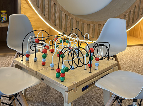 儿童区配备了多款 IKC 经典互动游戏,优雅融入塔楼的精致设计中。包括白天与黑夜、试衣间、串珠桌,以及登船与离底起锚模块的互动游戏组合。每一处细节都经过精心挑选,既能带来孩子们的欢乐,又不会破坏空间的优雅格调。