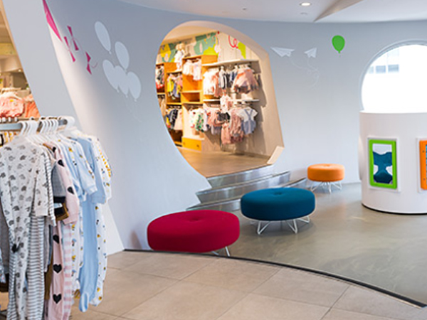 许多的服装零售品牌都陆续推出了童装产品线,随之而来的店铺陈列升级也逐步落地,童装连锁门店最主要的风格莫过于多彩的童趣,除了装饰性的元素,游乐功能也非常重要,为孩子设计的门店,理应是孩子们喜爱的样子。